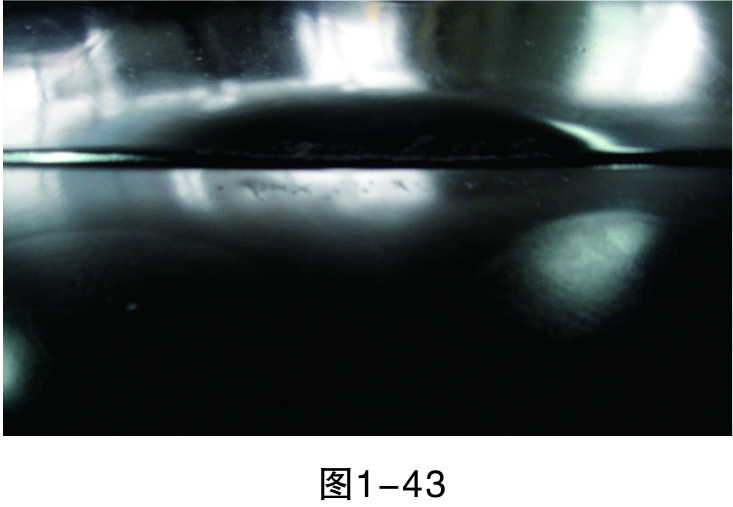 步驟16(檢查修復效果):用直尺測量修復平面與完好平面是否在同一平面上。如圖1-57所示,修復平面與完好平面還有一定的誤差。