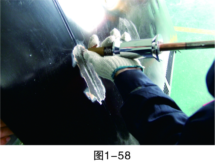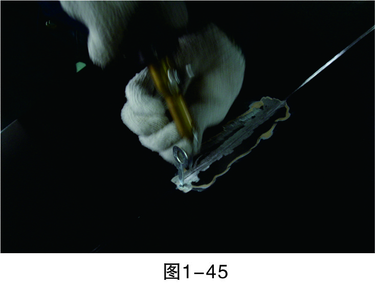 步驟3(除漆):打磨漆層,至板件金屬裸露后進行清潔,然后再進行鈑金作業(yè),如圖1-44所示。