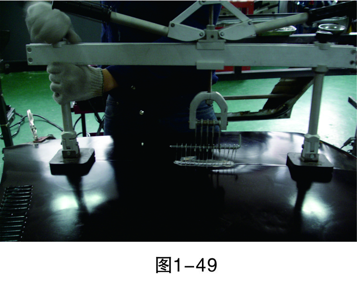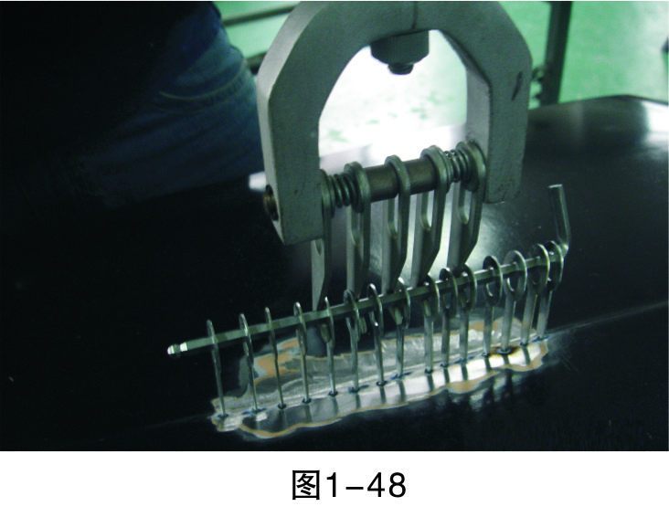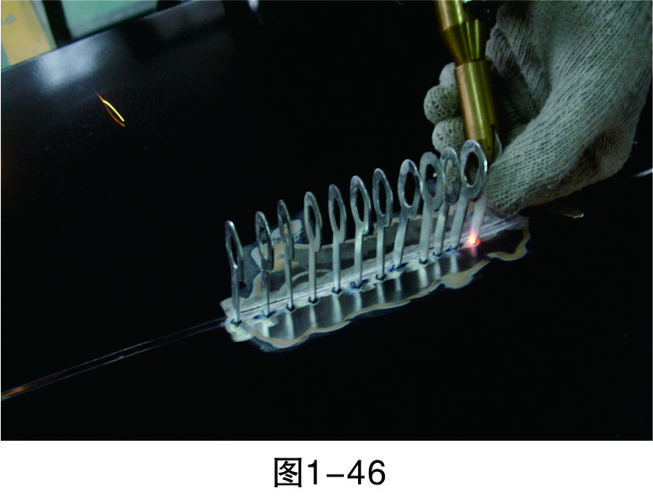 步驟5(直線焊接):把介子焊接成一條直線,為之后使用整形架做好準備,如圖1-46所示。