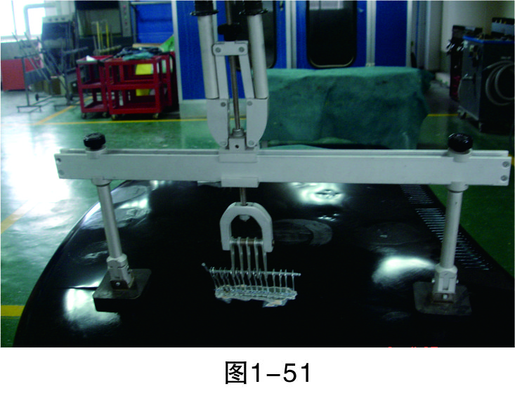 步驟6(穿進L形鐵):在介子中穿入L形鐵,以便整形架的拉鉤能固定在上面進行拉伸作業(yè),如圖1-47所示。