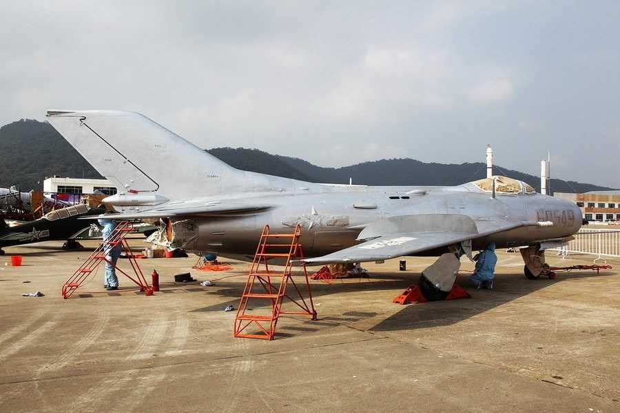 工作人員在整修60549號殲6。