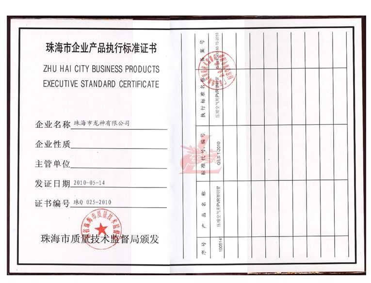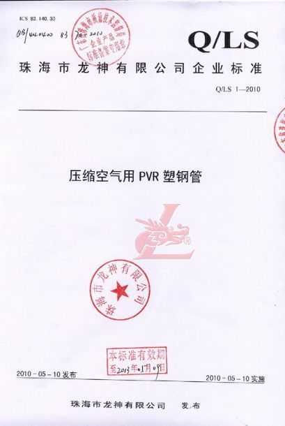 龍神壓縮空氣PVR塑鋼管成功申請(qǐng)企業(yè)執(zhí)行標(biāo)準(zhǔn) 2010年5月珠海市龍神有限公司“壓縮空氣PVR塑鋼管”得到珠海市質(zhì)量技術(shù)監(jiān)督局認(rèn)可,特此頒發(fā)“壓縮空氣PVR塑鋼管企業(yè)執(zhí)行標(biāo)準(zhǔn)”,龍神公司在嚴(yán)格執(zhí)行標(biāo)準(zhǔn)下,保證產(chǎn)品質(zhì)量。 2010-05-20 9994