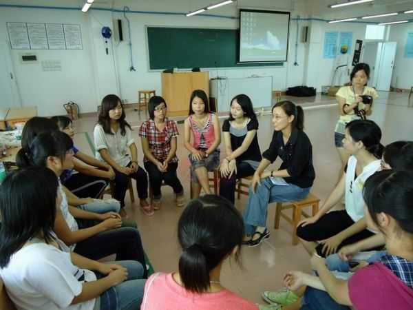 李老師帶領(lǐng)學(xué)生針對體驗活動進行反思分享
