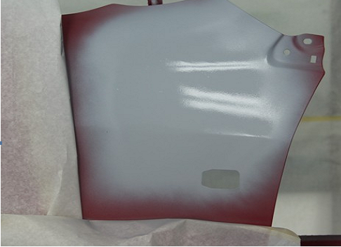 1. 首先用除油劑對需要修補(bǔ)的中涂層進(jìn)行整體除油,待干燥后用粘塵布整體除塵。