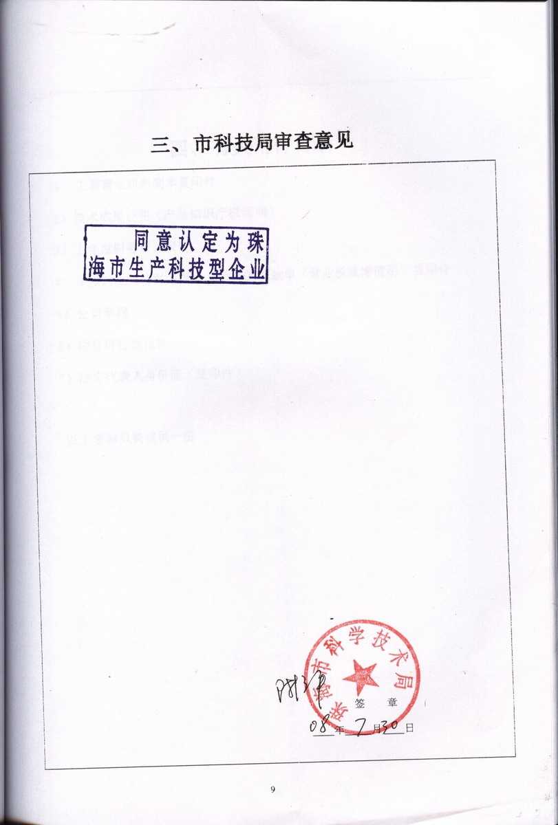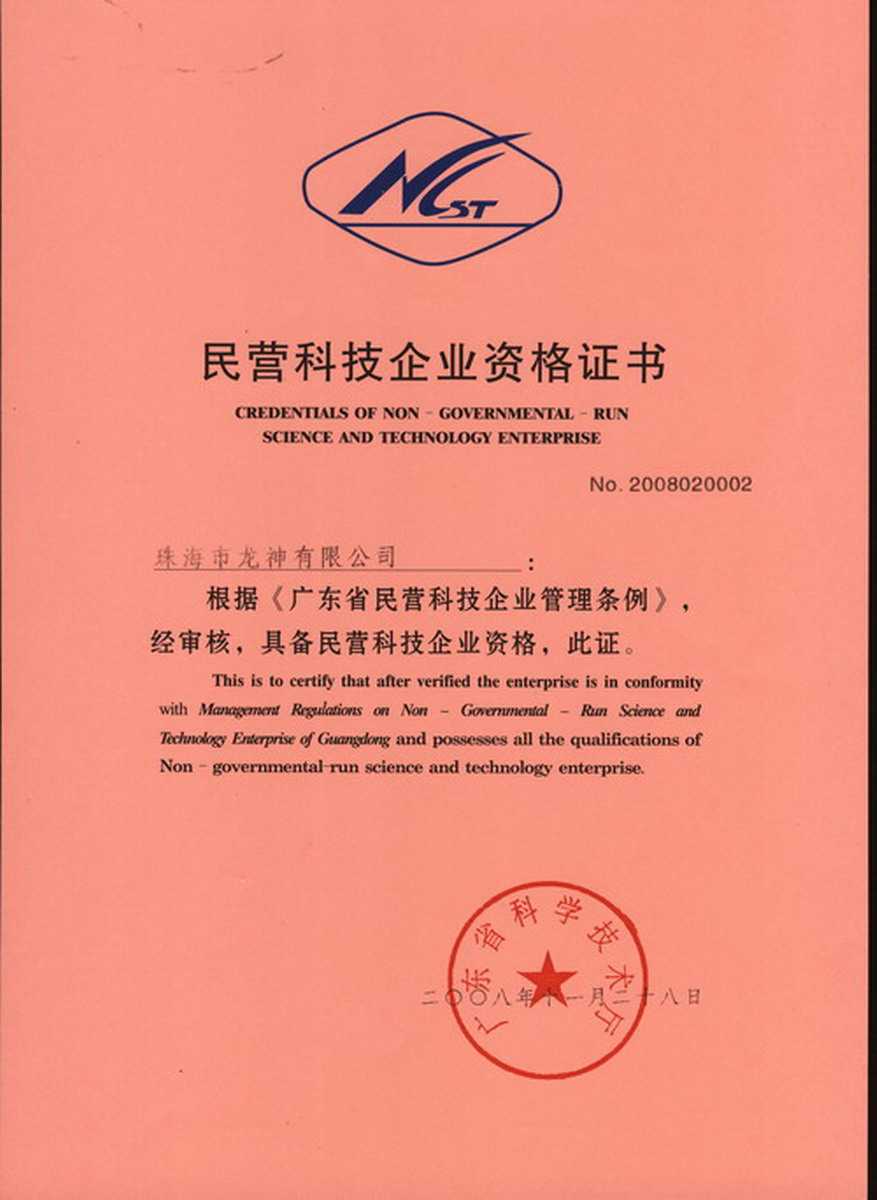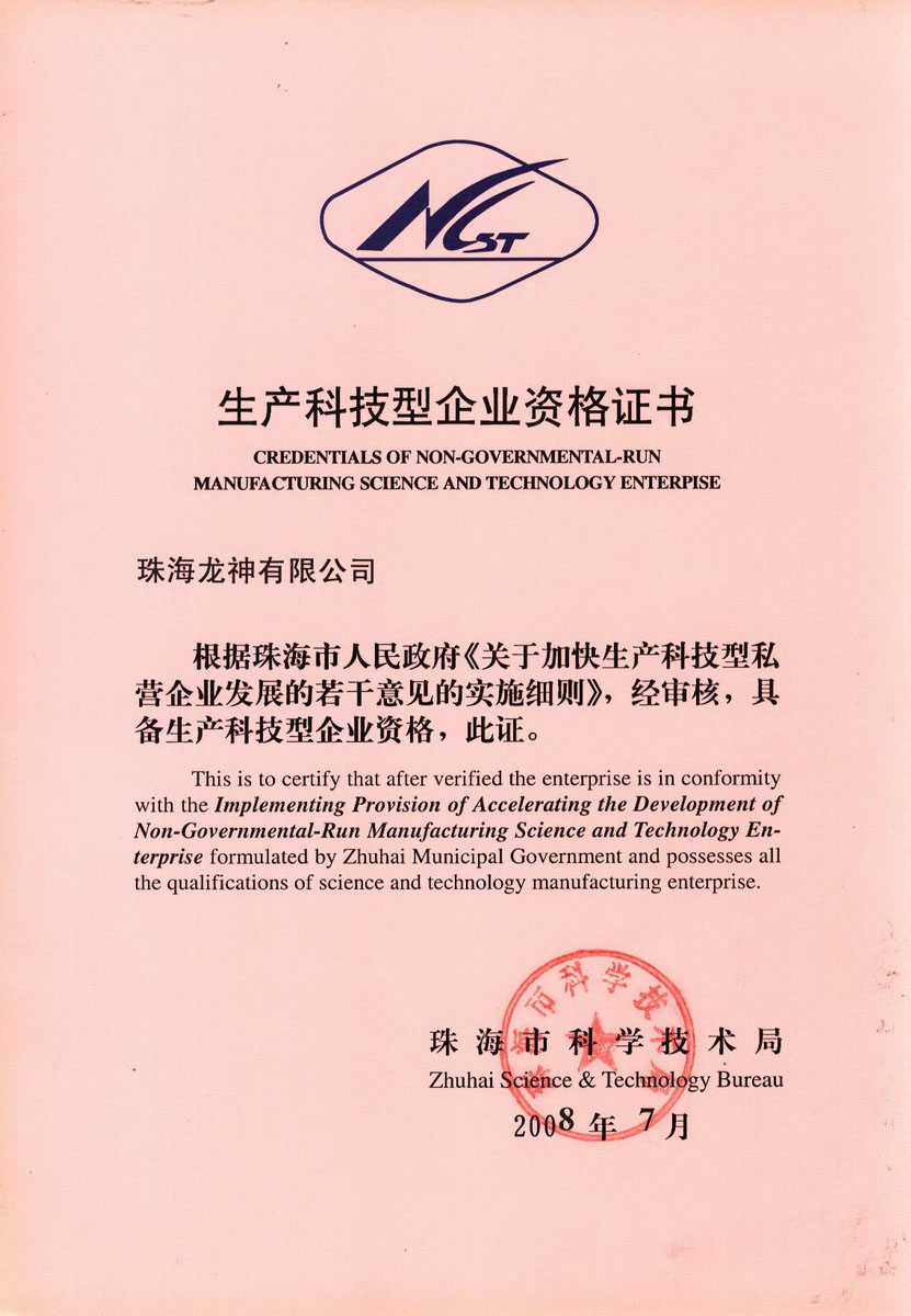 資格證書 一、ISO9001:2008質(zhì)量管理體系認證ISO9001:2008質(zhì)量管理體系認證證書 二、廣東省民營科技企業(yè)資格證書民營科技企業(yè)資格證書 廣東省民營科技企業(yè) 三、珠海市生產(chǎn)科技企業(yè)證書生產(chǎn)科技型企業(yè) 珠海市生產(chǎn)科技型企業(yè) 認定證書 生產(chǎn)科技型企業(yè)資格證書(以上圖片均可點擊放大) 2012-11-27 37072