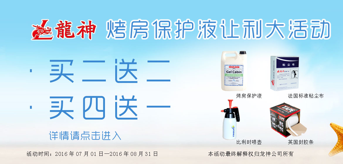 意大利烤房保護液讓利大活動 2016-06-24 10934 “熱夏、清涼、給力”意大利烤房保護液讓利大活動。買2罐,送法國“GekateX”標準粘塵布2盒;買4罐,送英國封膠條(1卷)或比利時噴壺(1個)。