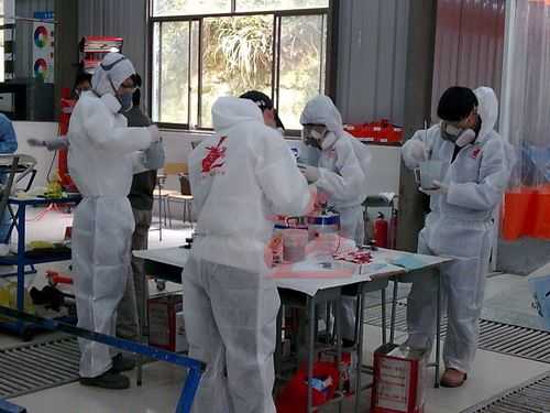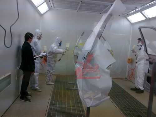 參賽選手統(tǒng)一著裝龍神贊助的噴漆防護進行規(guī)范化的調(diào)漆比賽
