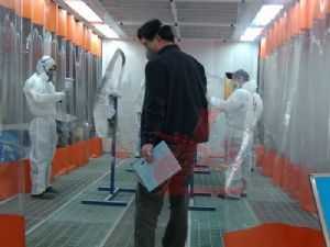 24日上午8點30分,比賽正式拉開戰(zhàn)幕。各代表隊選手統(tǒng)一著裝龍神贊助的鈑噴防護用品,全身心地投入到比賽中去。選手們訓練有素,工具準備、動手加工一氣呵成,扳手、噴槍,樣樣工具用起來得心應(yīng)手,表現(xiàn)了參賽選手們良好的精神風貌、扎實的基本功。